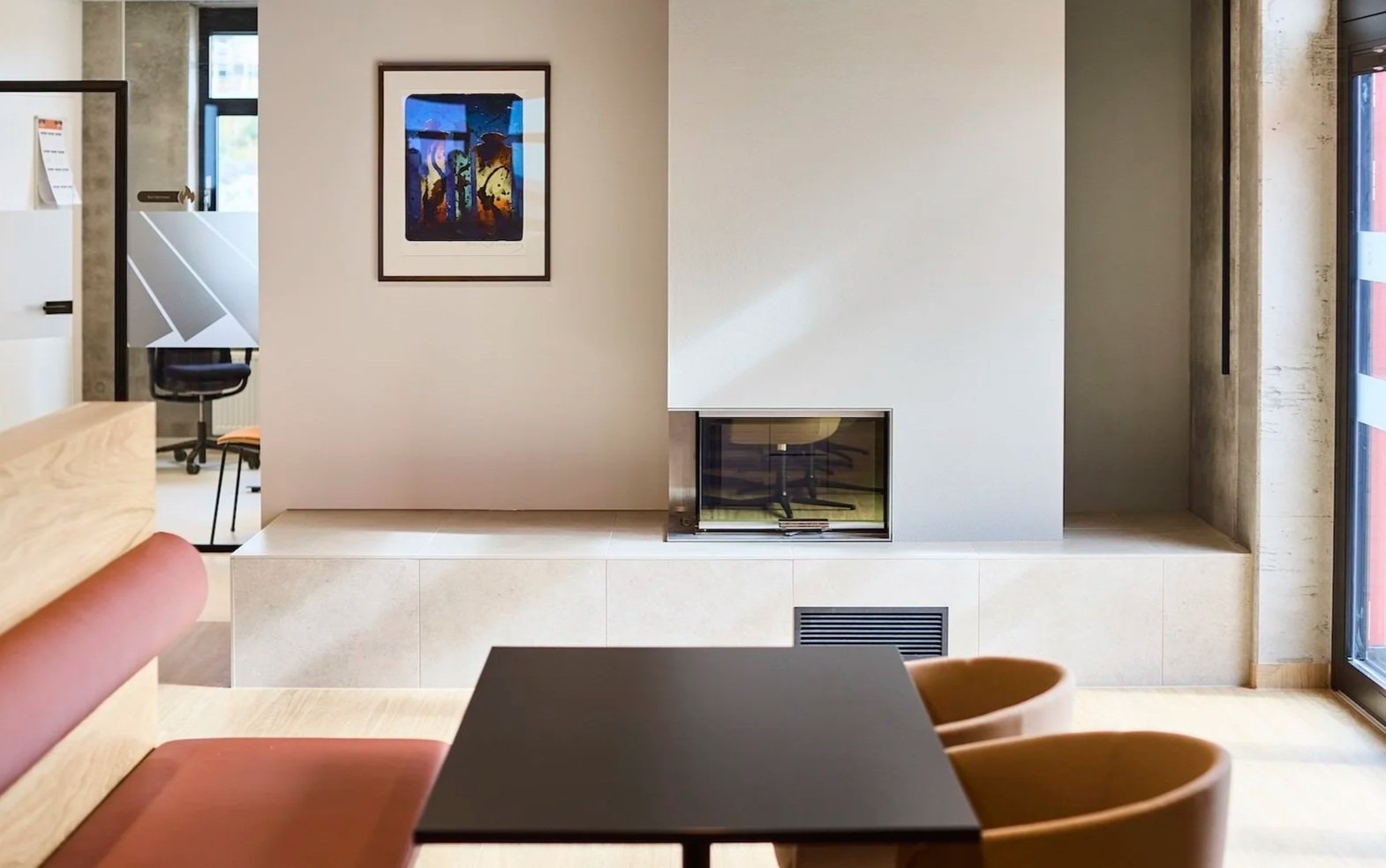The interior concept was developed through a user-driven process to define a workplace that supports collaboration across departments while ensuring zones for focus and calm.