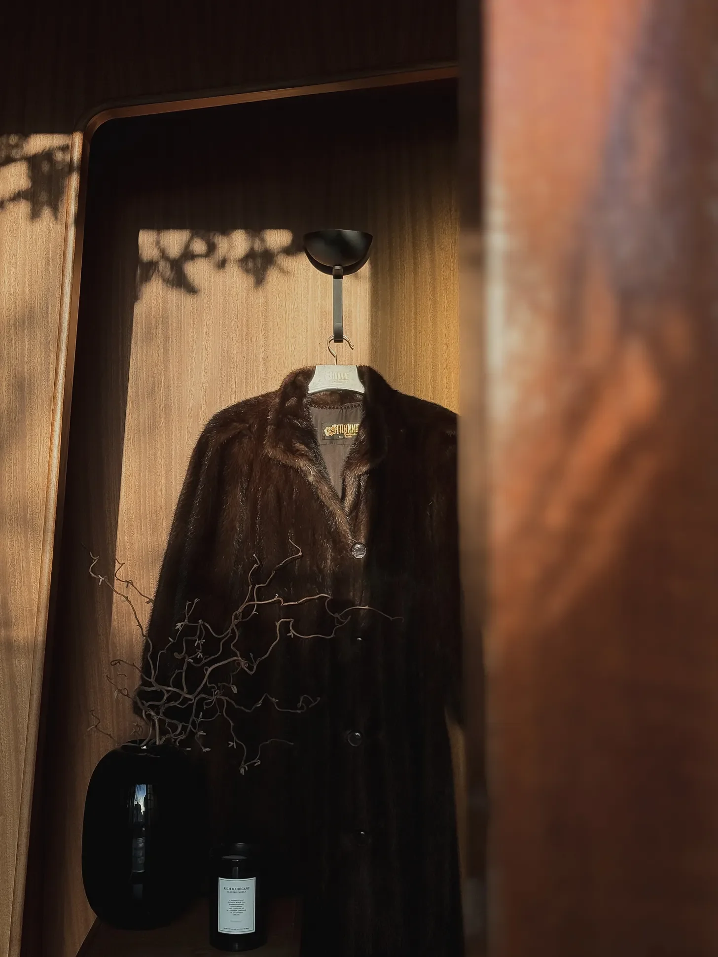Speaking of inheritance: I was given an original fur from Strømme, passed down through my family. Now it hangs on a Strømme hanger in our entryway — a soft whisper from another time. Like echoes folded gently into the present.
