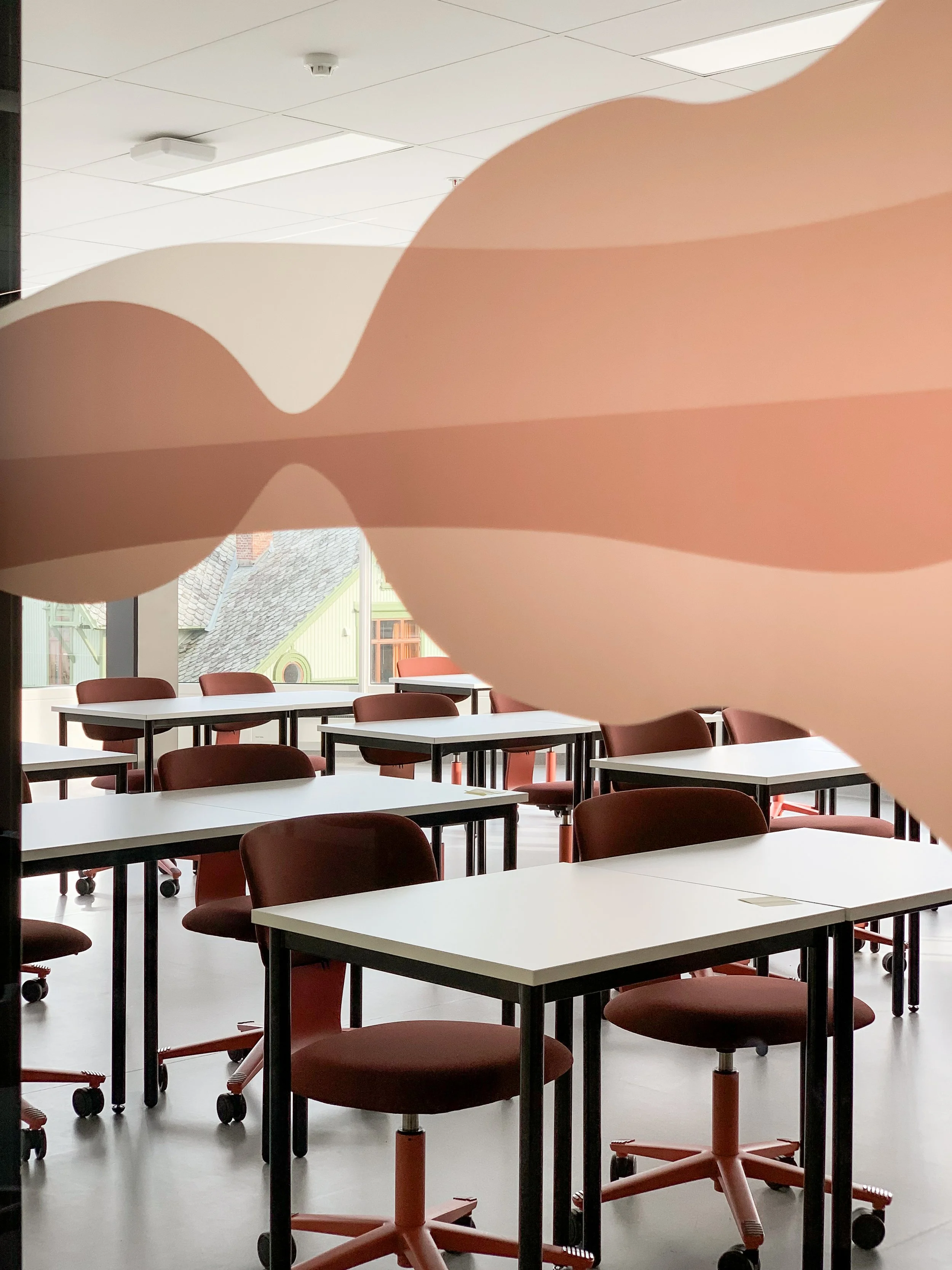 The graphic signage were integrated as an essential layer of the design, reinforcing the colour concept and completing the overall identity of the spaces. Across all classrooms, the Flokk Tion chair was selected as a unifying element, chosen for its flexibility and sustainable qualities.